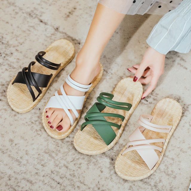 Sandal đế nhựa giả cói siêu dẻo quai chéo bảng free ship