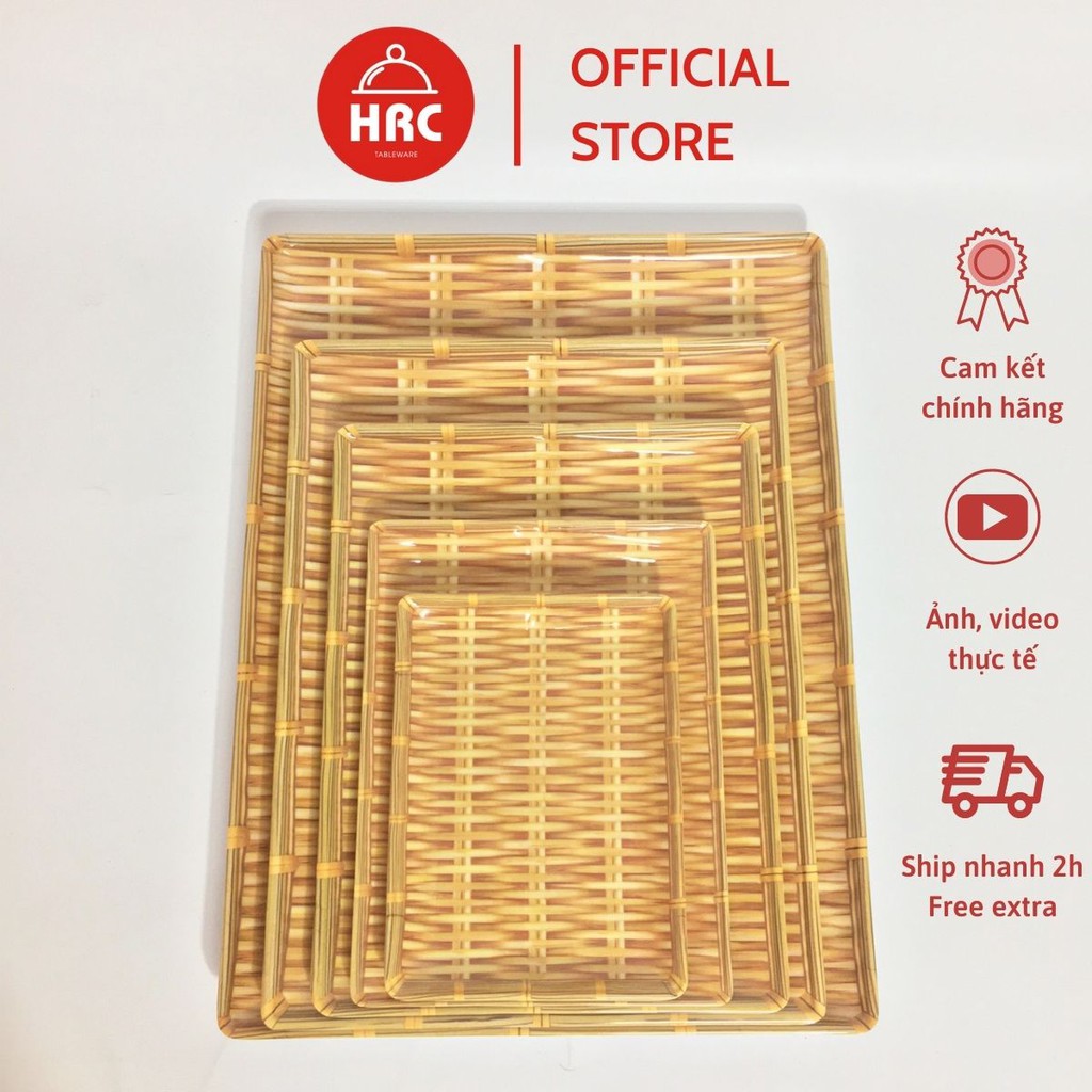 Đĩa Nhựa Giả Mây Tre Đan Hình Chữ Nhật Nhiều Size free ship
